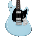 Based on the original 1970’s Music Man designs, the StingRay guitar takes a unique approach to classic electrics with its offset body and bold sound. The StingRay guitar features an HH pickup configuration with a 3-way selector, a vintage style tremolo, and an oversized 4 + 2 headstock. Available in Stealth Black.